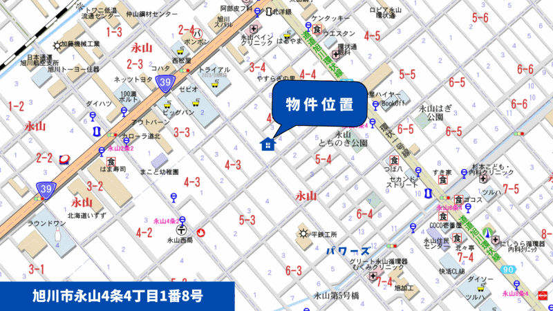 道北バス・旭川電気軌道 永山5条4丁目停 徒歩5分
